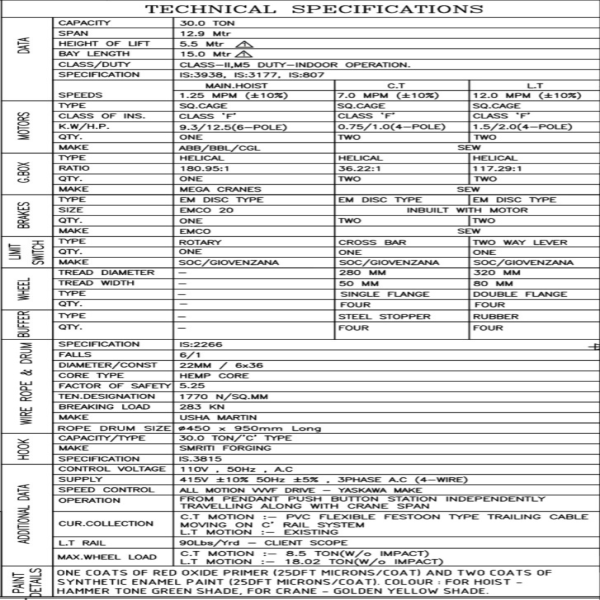 L.T. motor         :    1.5kW/ 2.0 HP - 2 No’s