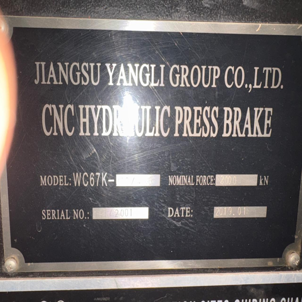 Yangli make hydraulic folding machine. 200 tonn , 4000mm bed length. Year of manufacture 2019.
