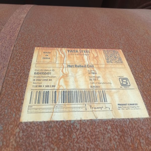 HR Coil - 11 mm X 1600 mm - TATA - IS 2062 E250 BR - 3951 MT - MTC available - Madhya Pradesh